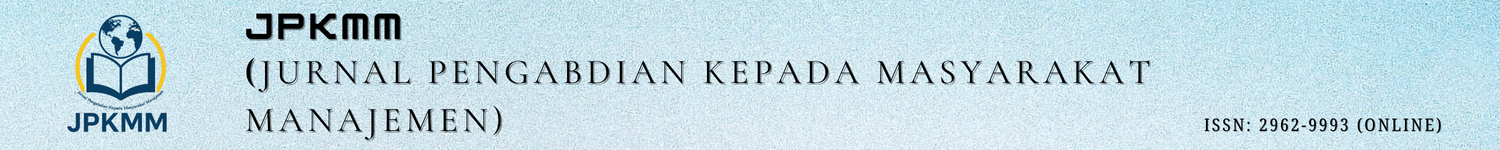 Jurnal Pengabdian Kepada Masyarakat Manajemen (JPKMM) adalah jurnal terbitan khusus Prodi Manajemen Universitas Panca Bhakti yang diperuntukkan bagi dosen dan Mahasiswa yang berkepentingan untuk mempublikasi pengabdian kepada masyarakat yang bertujuan untuk memberikan kontribusi dalam informasi hasil PKM dari berbagai bidang ilmu.